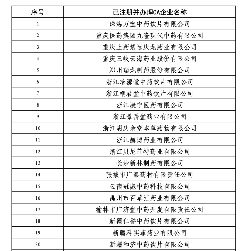 附:已注册并办理CA企业名称(部分)