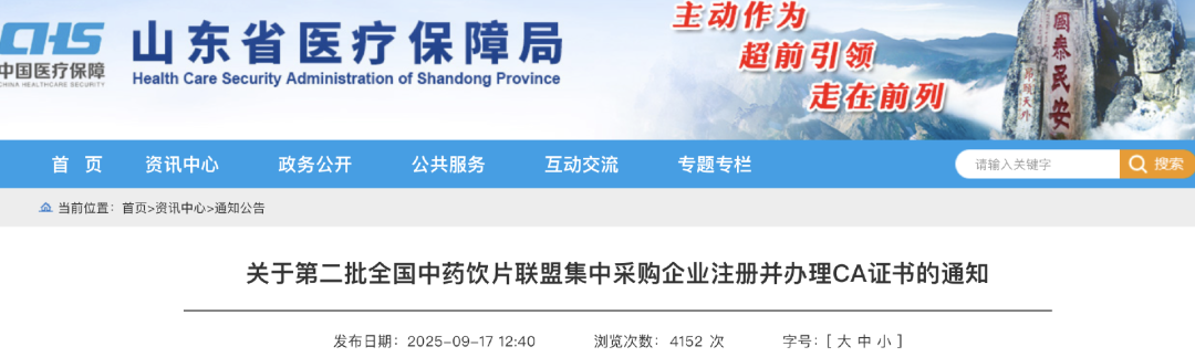 与首批联采相比,第二批联采在操作流程上做出了关键调整,核心变化在于申报系统的切换。具体办理流程分为两步:企业需先在山东省药品和医用耗材招采管理子系统完成注册并通过审核,随后登录证书在线服务平台,按照配套操作手册完成注册后办理 CA 证书。全国中药饮片联盟采购办公室明确规定,2025年10月26日为上述全部流程的截止日期,未按时完成相关工作的企业,将无法申报第二批全国中药饮片联盟集中采购。
