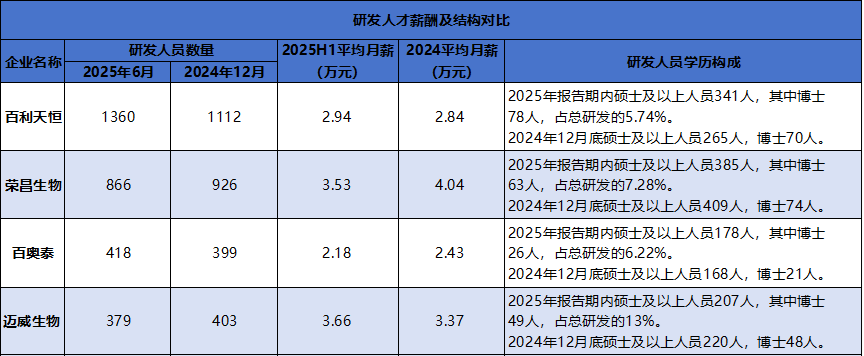 注:研发人员数分别为2025年半年度报告及2024年度报告披露数据;月薪根据公司公告全年或半年度薪酬折算