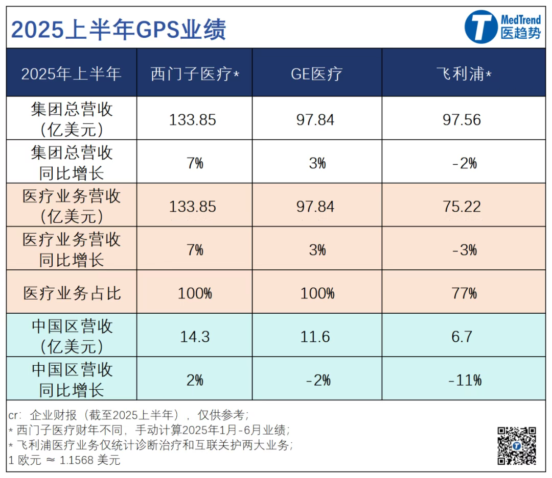 2025上半年,GE医疗中国区营收11.6亿美元,同比-2%;飞利浦中国区营收5.79亿欧元(约6.7亿美元),同比-11%。