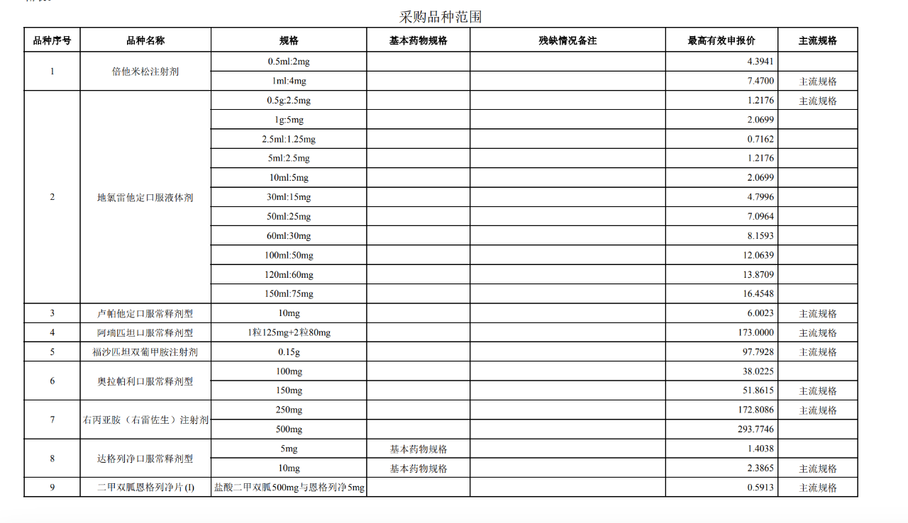 本次全国46359家医药机构参与报量,其中77%按厂牌、23%按通用名报量。如达格列净口服常释剂型,阿斯利康原研产品需求量占比约48%;国产品牌中,翰森制药的阿戈美拉汀需求量占比近60%。药品目录上较之前没有调整,仍包含55个品种,但国家联采办标注了各品种主流规格及价格。