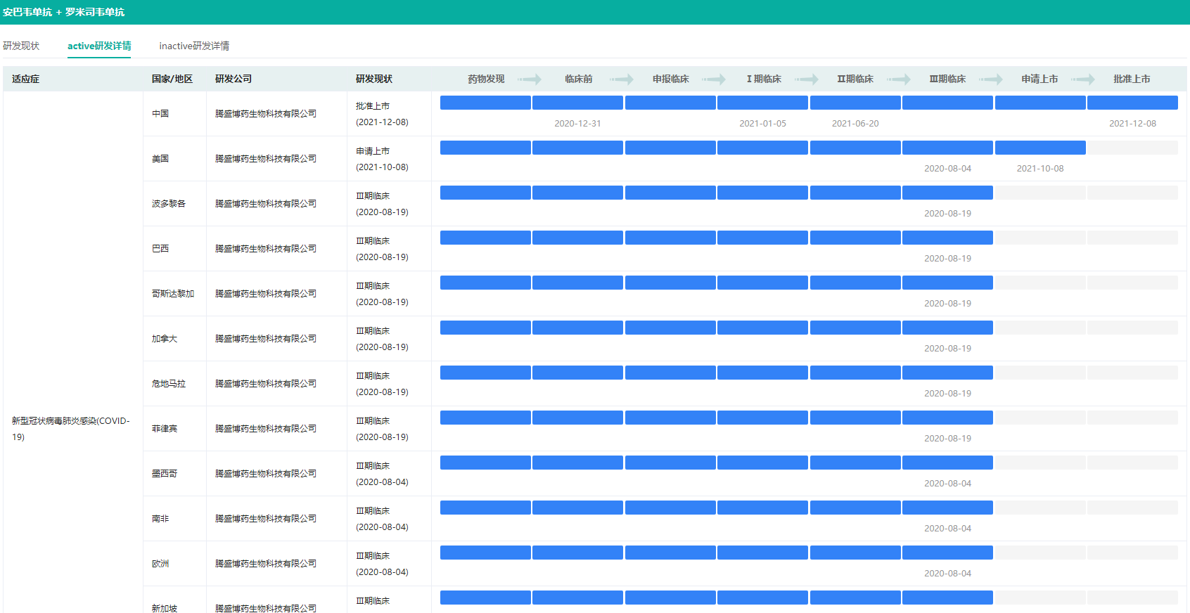 安巴韦单抗+罗米司韦单抗新冠适应症研发详情(部分)