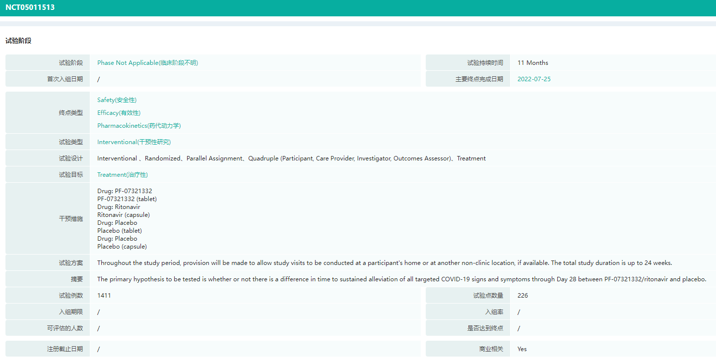 Paxlovid新冠适应症研发详情(部分)(微信搜索"药融云小程序"进行相关更多数据查询)