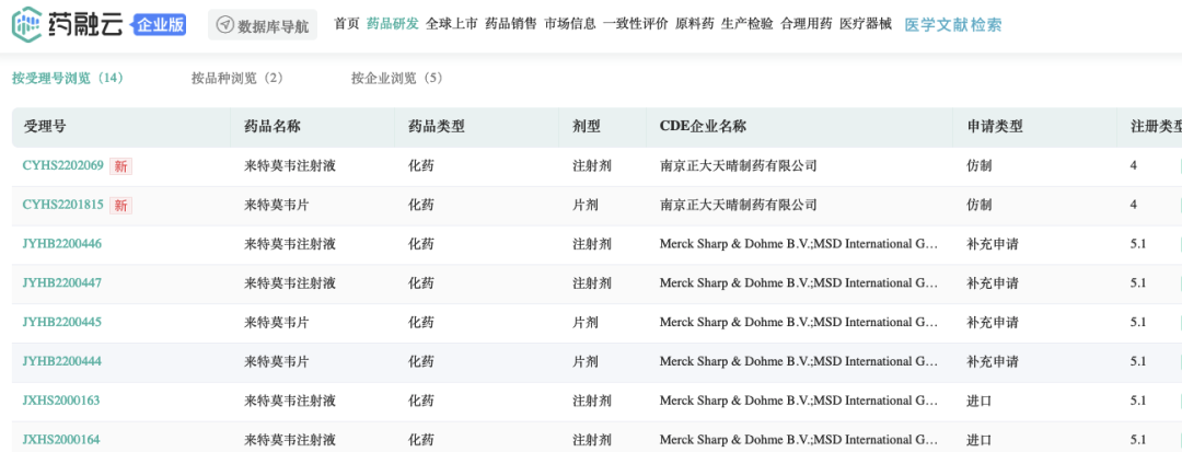 2022年12月13日,CDE承办受理公示了南京正大天晴制药有限公司的来特莫韦注射液仿制药上市申请。此前也受理了该公司来特莫韦片的仿制药上市申请。原研化合物专利将于2024年4月到期。