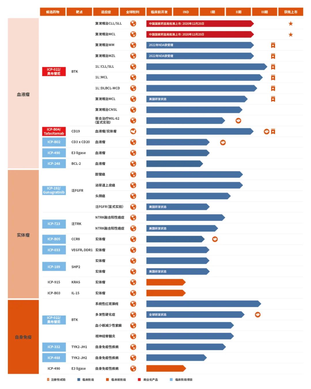 实体瘤方面,诺诚健华有不同靶点的7款药物正在进行新药研发,其中ICP-192和ICP-723等2款药物临近商业化。