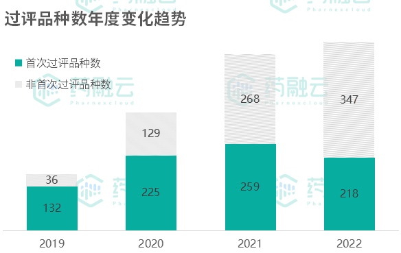 2021年,NMPA共批准527款仿制药通过/视同通过一致性评价,其中259个品种迎来首家过评,占比49.1%。2022年则共有565款药过评,其中首次过评品种有218个,占比38.5%,低于去年。