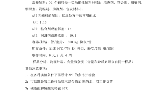 综上所述,目前尚无统一的原辅料相容性试验设计指南,因此在设计原辅料相容性试验时应充分考虑原料药、辅料的理化性质。
