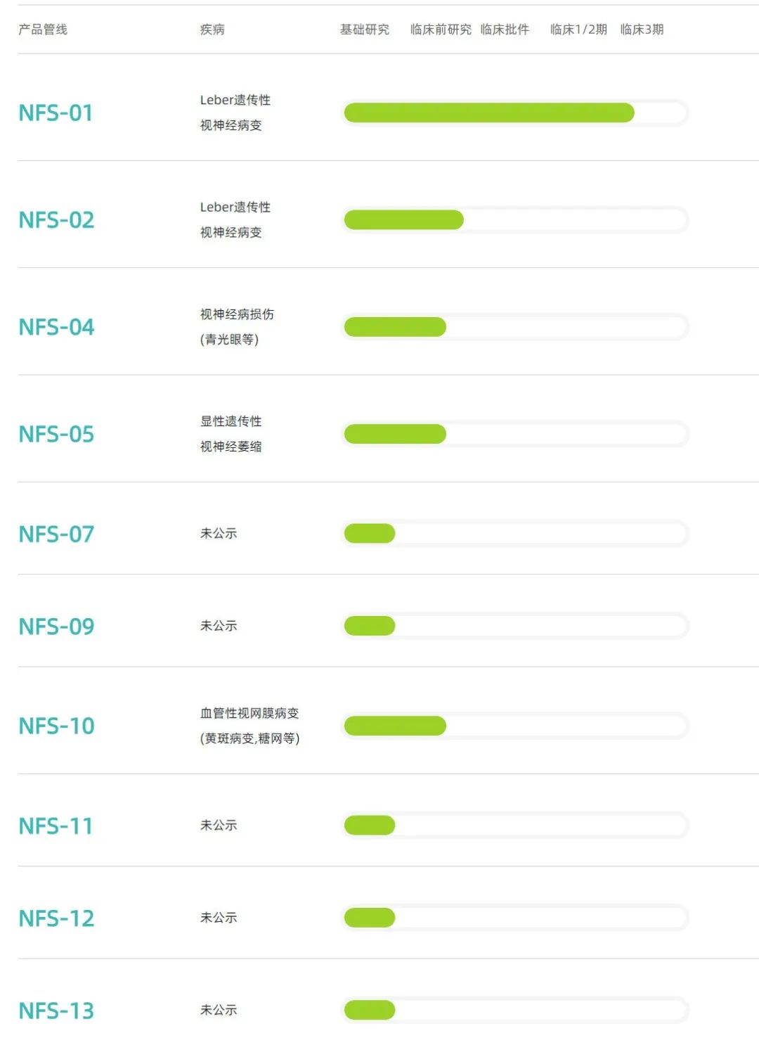 纽福斯目前已建立丰富的眼科基因治疗产品管线,包含针对视神经损伤疾病、血管性视网膜病变等多种眼科疾病的10余个在研项目。