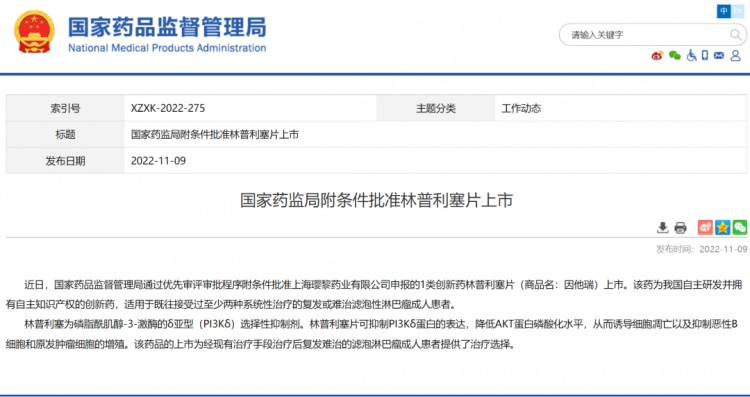 林普利塞于2022年11月正式获批上市,用于治疗既往接受过至少两种系统性治疗的复发或难治(R/R)滤泡性淋巴瘤(FL)成人患者。作为我国首个高选择性PI3Kδ抑制剂,林普利塞采用创新性的药物结构,使其选择性更高、特异性更强,有助于减少高血糖、高血压及腹泻等不良反应情况的发生。同时,林普利塞的给药方式为口服给药,给药频次为一日一次且不受餐食影响,更有助于提升患者依从性,便于临床长期治疗和有效管理。