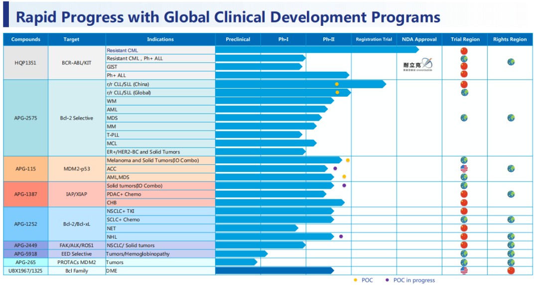 融资款项将主要用于管线产品的进一步临床开发及商业化,包括但不限于公司核心产品耐立克(奥雷巴替尼)、关键候选产品APG-2575及其他关键候选产品的临床开发与推进,以及一般公司用途等。