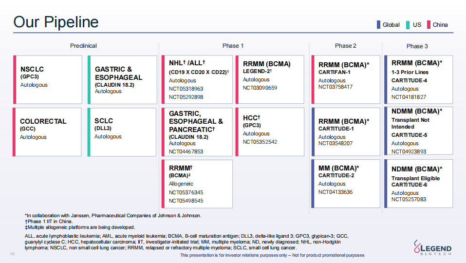 2023年1月24日,Legend Biotech公告,2022年Q4细胞疗法CARVYKTI销售额0.55亿美元。去年Q2首季销售约0.24亿美元,Q3约0.55亿美元;2022年全年合计1.34亿美元,约为人民币9.1亿人民币(1美元=6.7843人民币)。Carvykti是全球第2款BCMA CAR-T疗法,2022年2月28日获FDA批准上市,合作伙伴强生预计峰值有望达到50亿美元。