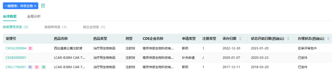 2023年1月12日,CDE官网显示,传奇生物的西达基奥仑赛上市申请拟纳入优先审评。