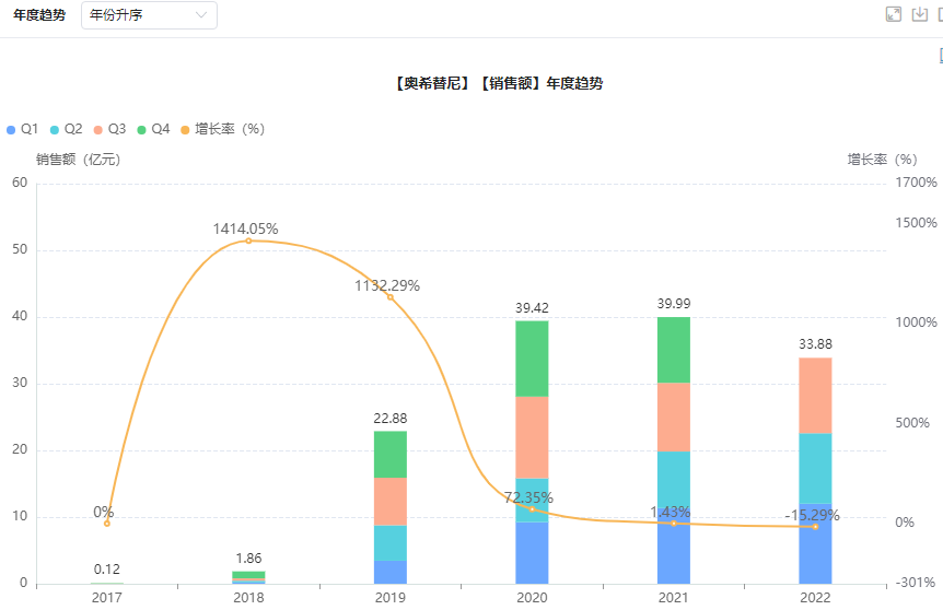 医院端市场奥希替尼年度销售趋势