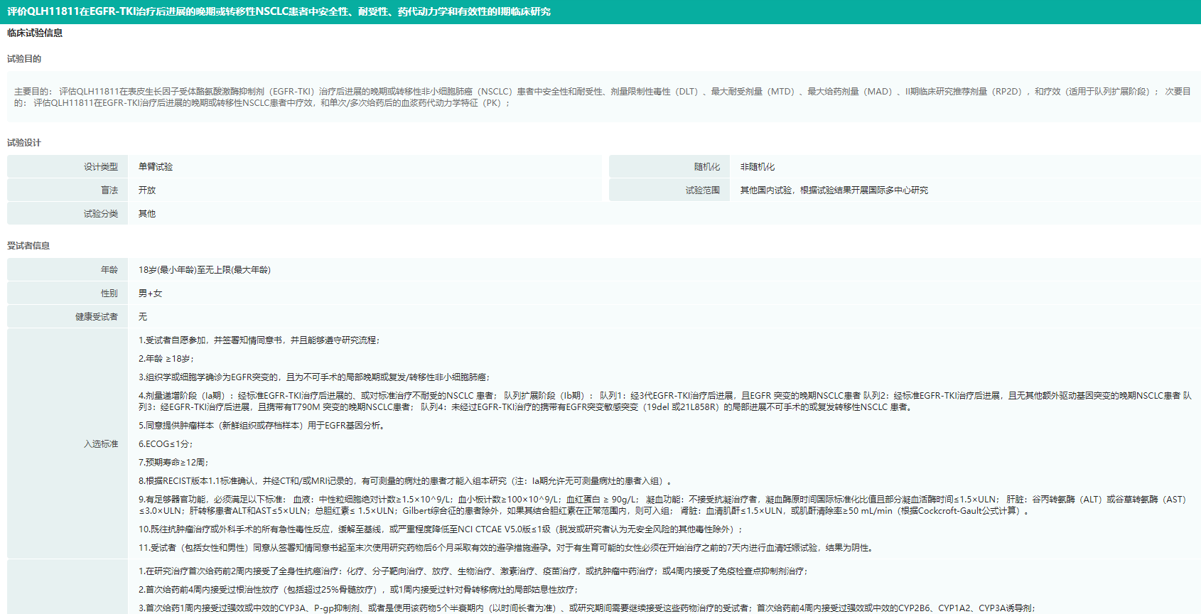 QLH11811临床试验信息(部分)