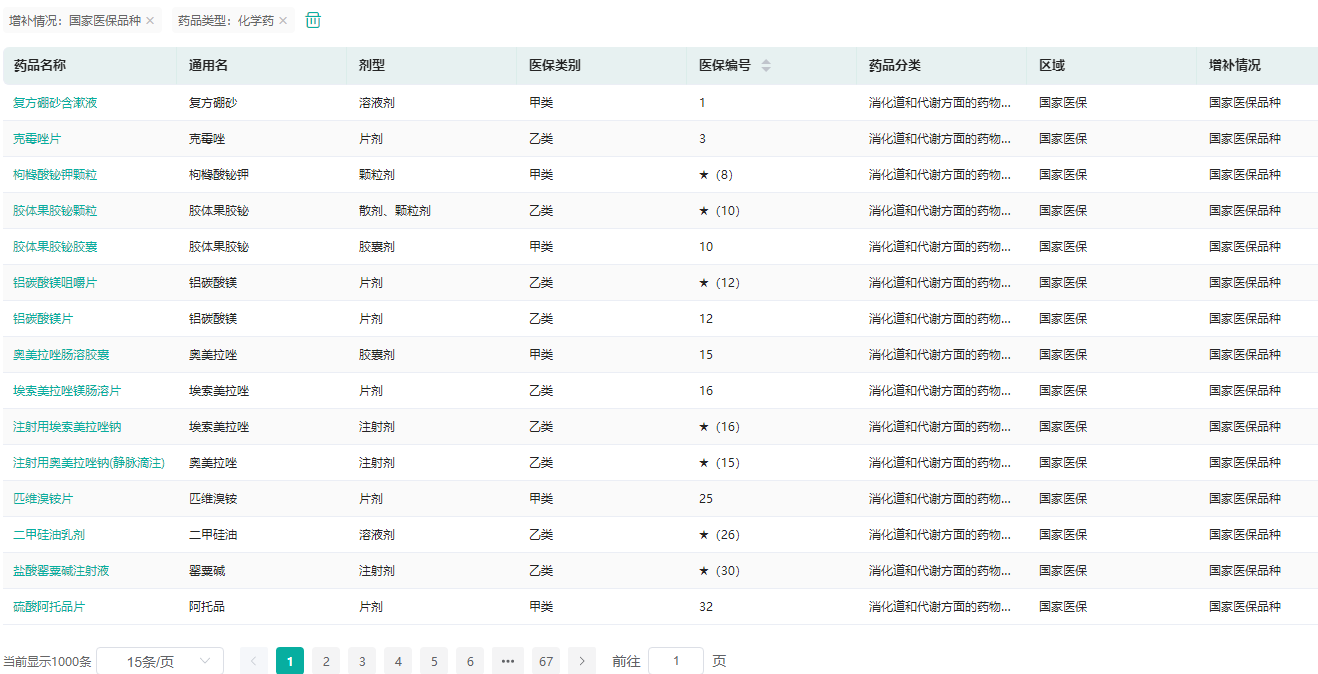 医保目录品种查询-化学药(部分)(微信搜索"药融云小程序"进行相关更多数据查询)