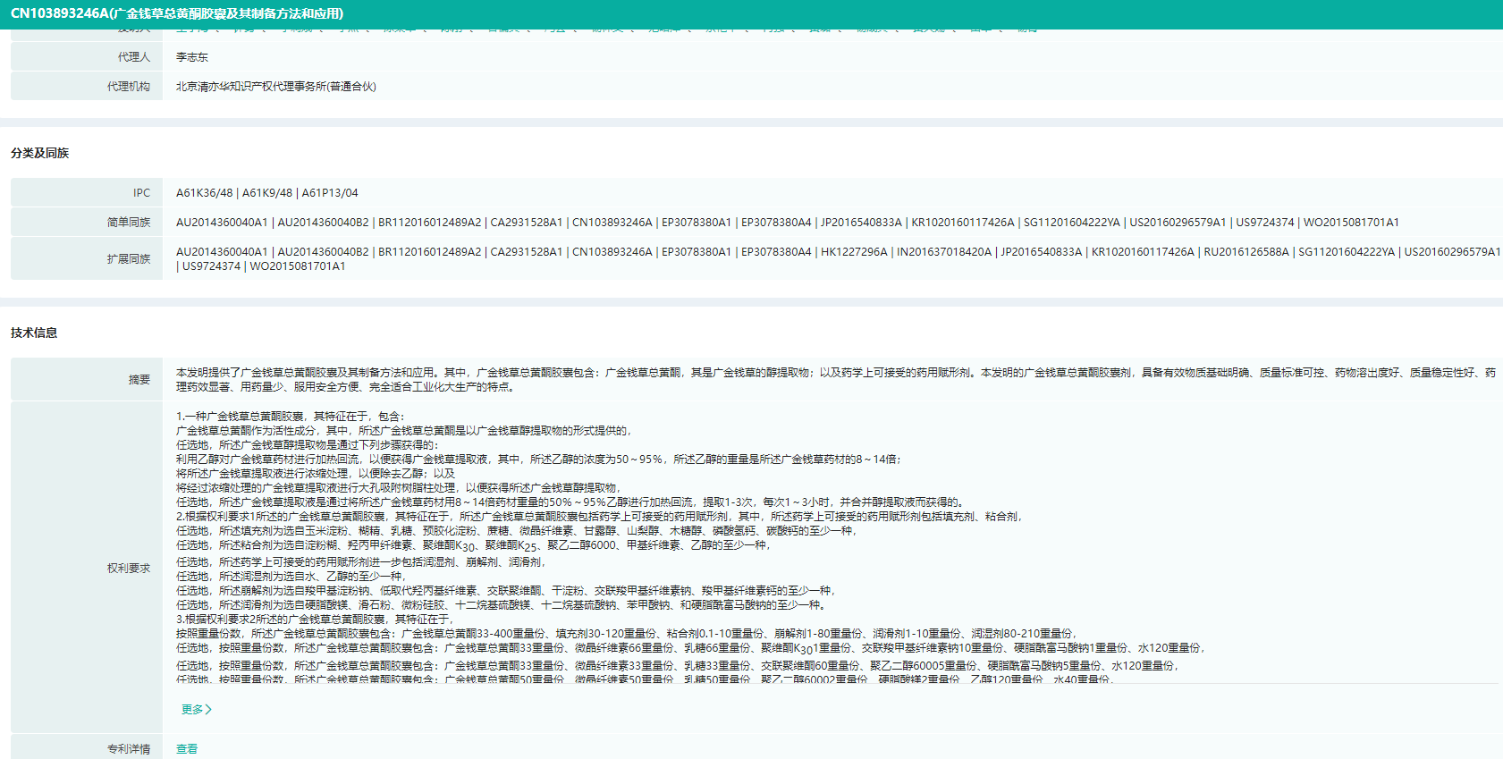 广金钱草总黄酮胶囊专利信息(部分)