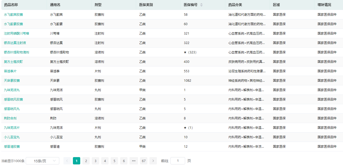 医保目录品种查询-中成药(部分)
