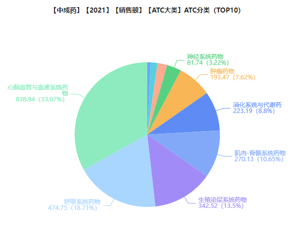 2021年医院全终端中成药ATC分类格局