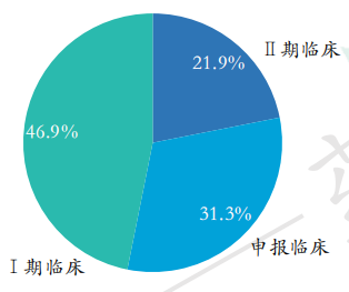 2017-2022期间,共计受理CD3药品32个。CD3药品中申报临床占比31%,I期临床占比47%,II期临床占比22%,无III期临床及以上研发阶段药品。