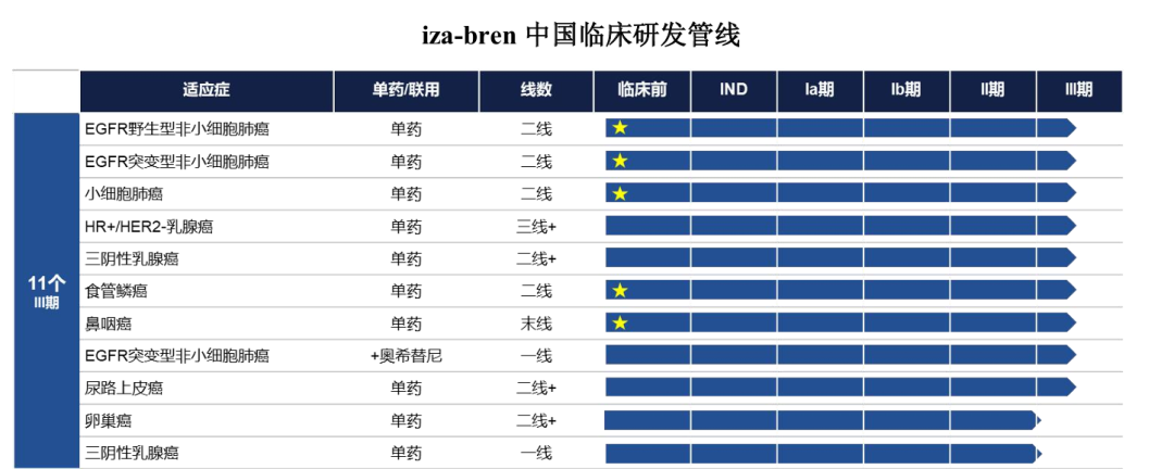而值得注意的是,目前Iza-bren在国内已启动11项三期临床,此次ESMO上披露的结果,为这一系列的注册性三期提高了确定性,也为Iza-bren后续全球临床的成功,奠定了最坚实的数据和逻辑基础。