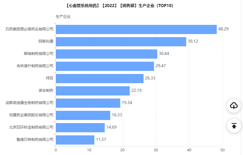 从心血管药物市场企业排名来看,石药集团恩必普药业力压阿斯利康、辉瑞、拜耳、诺华等跨国药企位居榜首,本土药企中吉林津升制药、成都诺迪康生物制药、悦康药业等也有一定的市场优势。