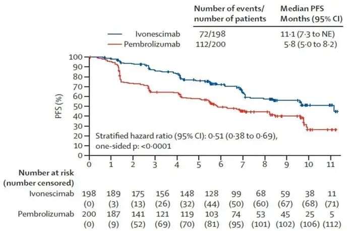 研究共纳入532例患者,其中约63%为中心型鳞癌,中期分析显示,在意向治疗(ITT)人群中,依沃西单抗联合化疗的无进展生存期(PFS)显著优于替雷利珠单抗组,且无论PD-L1表达状态如何,患者均能获益。