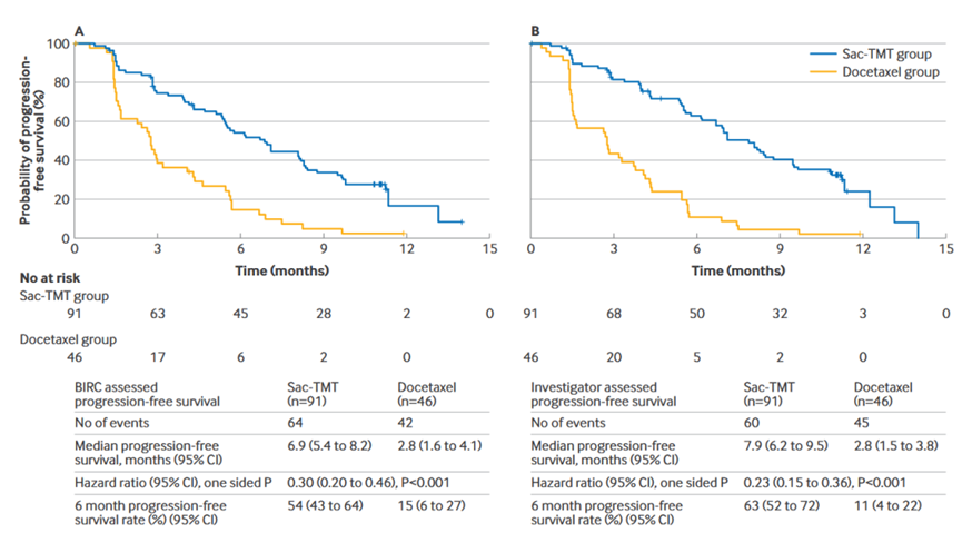 [6] Fang W, Li X, Wang Q, Meng X, Zheng W, Sun L, Yao W, Zhuang W, Fan Y, Zhuo M, Luo Y, Zhang Z, Song X, Yang R, Yang J, Jin X, Diao Y, Ge J, Zhang L. Sacituzumab tirumotecan versus docetaxel for previously treated EGFR-mutated advanced non-small cell lung cancer: multicentre, open label, randomised controlled trial. BMJ. 2025 Jun 5;389:e085680. doi: 10.1136/bmj-2025-085680.