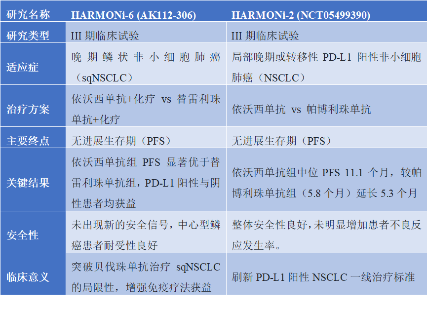 近期公布的HARMONi-6研究(AK112-306)是一项III期临床试验,旨在评估依沃西单抗联合化疗对比替雷利珠单抗联合化疗作为晚期sqNSCLC一线治疗的疗效与安全性。