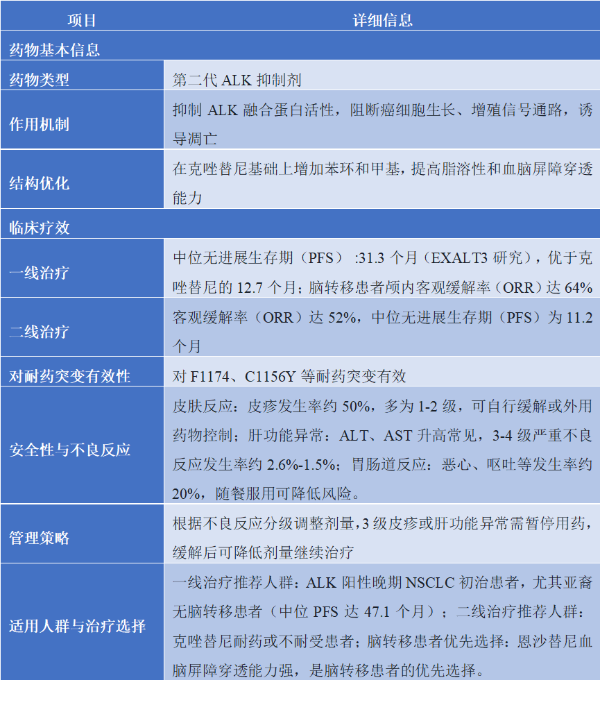 2024年12月18日,该药物获得美国FDA批准,用于治疗既往未接受过ALK抑制剂治疗的成人ALK阳性局部晚期或转移性NSCLC患者,标志着其在全球范围内的临床价值得到肯定。