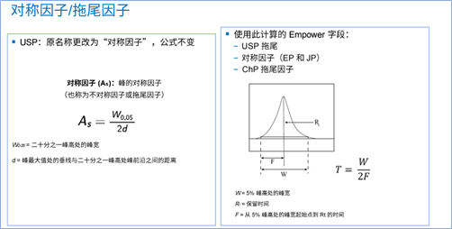 “拖尾因子”将改称为“对称因子”。算法没有变化,Empower 当前报告“USP拖尾”。