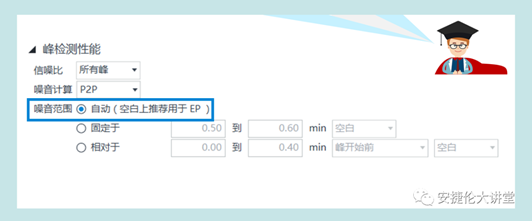 在噪声范围内选择自动(空白上推荐用于EP)即可。如果需要使用≥5倍半峰宽,可使用空白的固定范围或相对范围来进行设置。