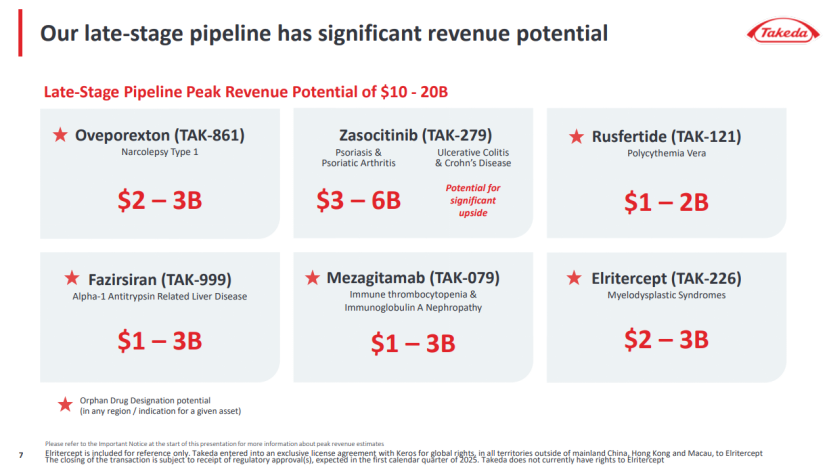 武田处于临床后期的6款重磅产品,暂无实体瘤相关产品