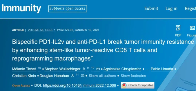 针对PD-L1药物的联用也是业内研究的方向之一。今年1月,来自瑞士ISREC的Douglas Hanahan研究团队在Immunity杂志上发表了最新研究,文章名称为《双特异性PD1-IL2v和抗PD-L1通过增强干细胞样肿瘤反应性CD8+Tcells和重编程巨噬细胞来打破肿瘤免疫抵抗》。