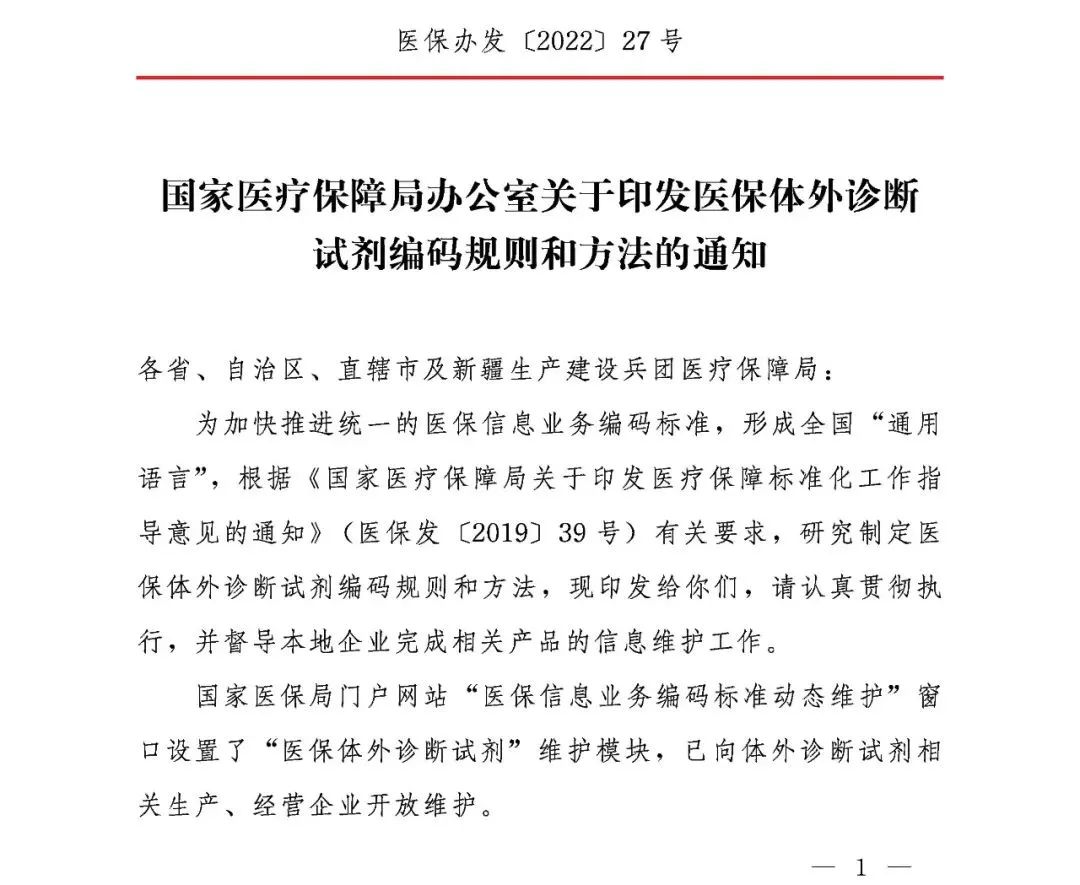 国家医保局:印发医保体外诊断试剂编码规则和方法!