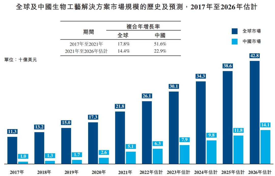据统计,2017年至2021年全球生物工艺解决方案市场复合年增长率达17.8%,而中国市场达到了51.6%,涨势迅猛。