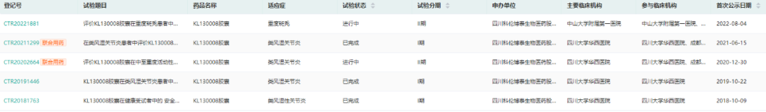 KL130008胶囊为靶向JAK1和JAK2激酶的选择性抑制剂。临床前研究显示,该产品可高效、选择性抑制JAK激酶活性,有望在发挥治疗作用的同时,兼具良好的安全性和耐受性。目前,KL130008正在开展治疗重度斑秃和活动性类风湿关节炎的II期临床试验。