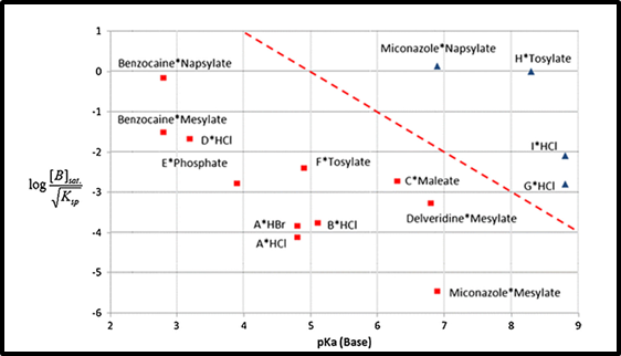 对自身因素进行小结可以看出,影响化合物是否会发生盐歧化最直接的自身因素就是pHmax,pKa和溶解度的差异,这些差异都可以通过pHmax来表现。