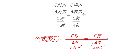 C对内:指对照品中的杂质内标的浓度;A对内:指对照品中内标物的峰面积;C对:指对照品中目标物的浓度;C样:指供试品中目标物的浓度;