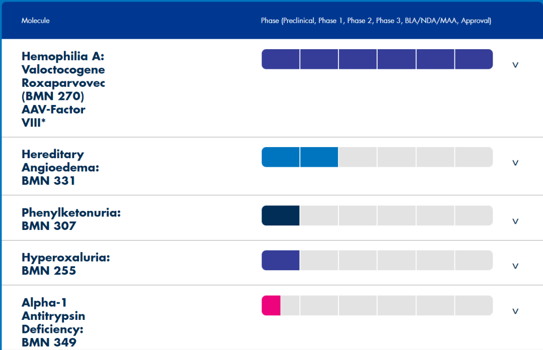 BioMarin未来颇具看点的是基因疗法Roctavian。2022年8月24日,欧盟批准Roctavian (Valoctocogene roxaparvovec)基因疗法的有条件上市,用于治疗体内不含凝血因子VIII抑制物和腺相关病毒5(AAV5)抗体的重度A型血友病成人患者。2023年3月6日,BioMarin公告,FDA确定提交正在进行的ROCTAVIAN第3期GENEr8-1研究的三年数据分析构成了一项重大修订,因为有大量额外数据,并将新的PDUFA目标行动日期定为2023年6月30日。第三阶段研究包括134名参与者,是迄今为止最大的血友病基因治疗研究。