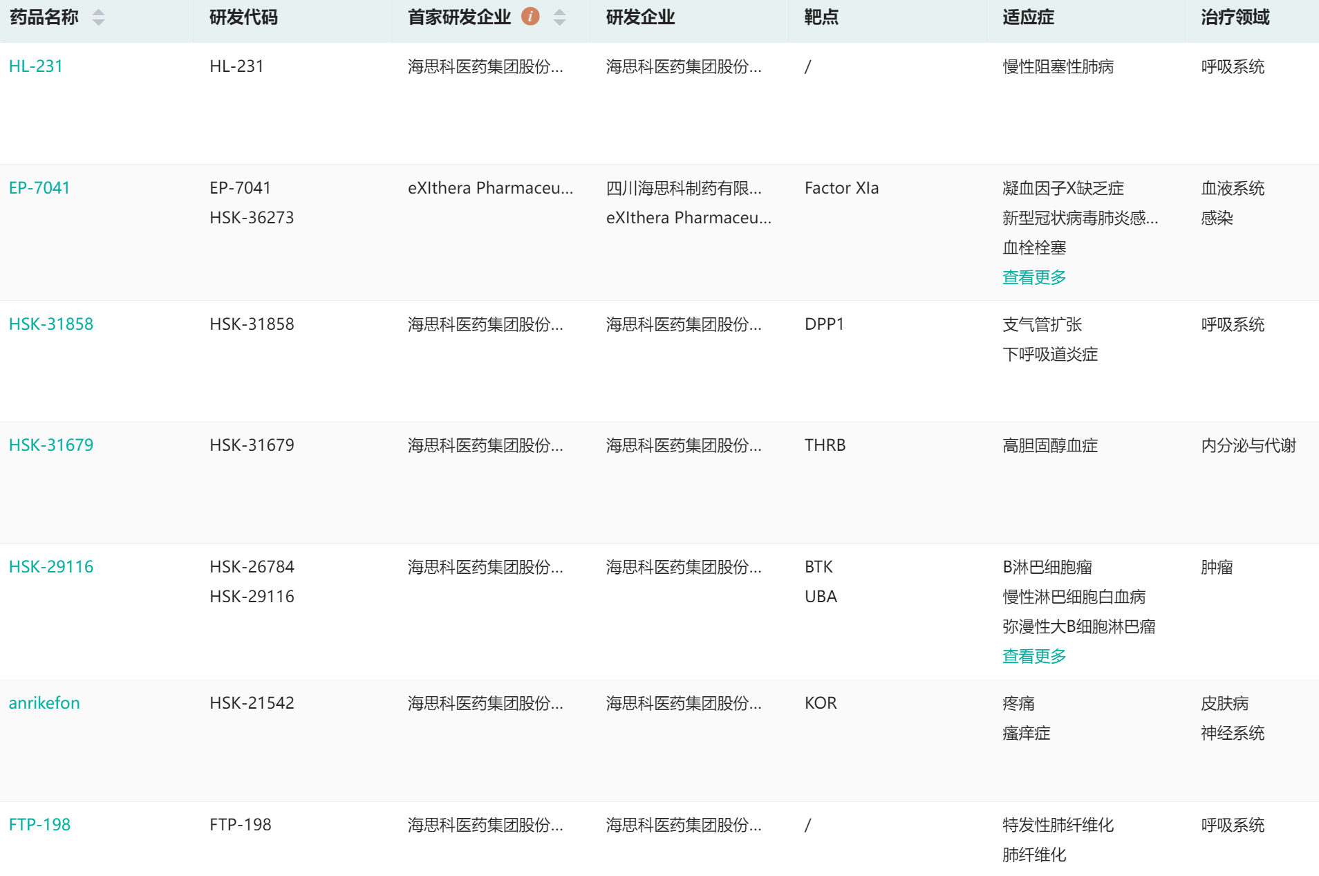 海思科医药在研管线查询(部分)