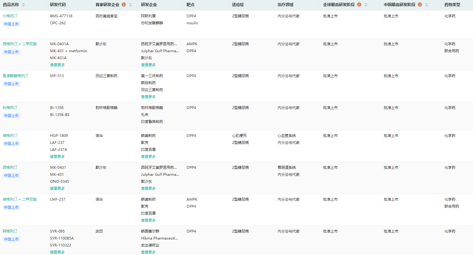 国内获批上市的DPP-4抑制剂创新药