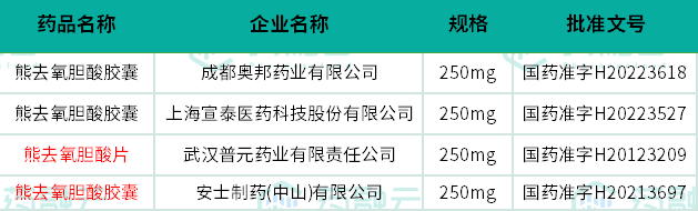 熊去氧胆酸已过评企业(标红的为首家过评)
