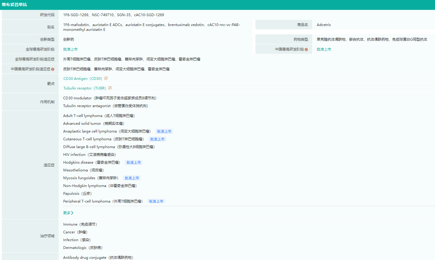 维布妥昔单抗获批适应症查询(微信搜索"药融云小程序"进行相关更多数据查询)