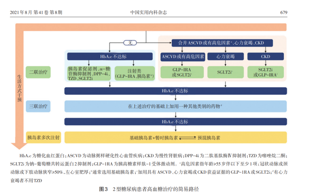 图3. 2型糖尿病患者高血糖治疗的简易路径,源自中国2型糖尿病防治指南(2020年版)