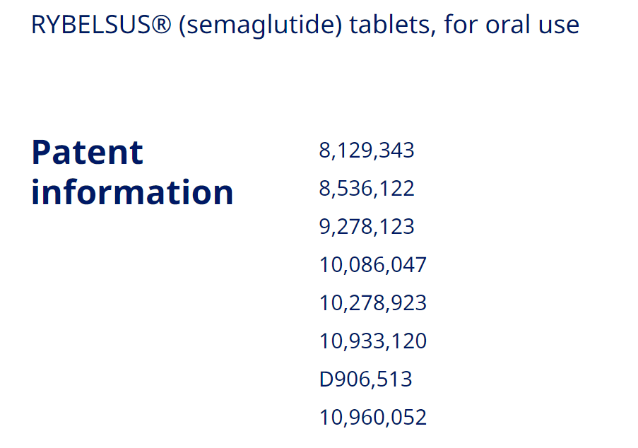 图1. Rybelsus在FDA网上的专利信息