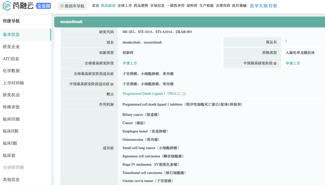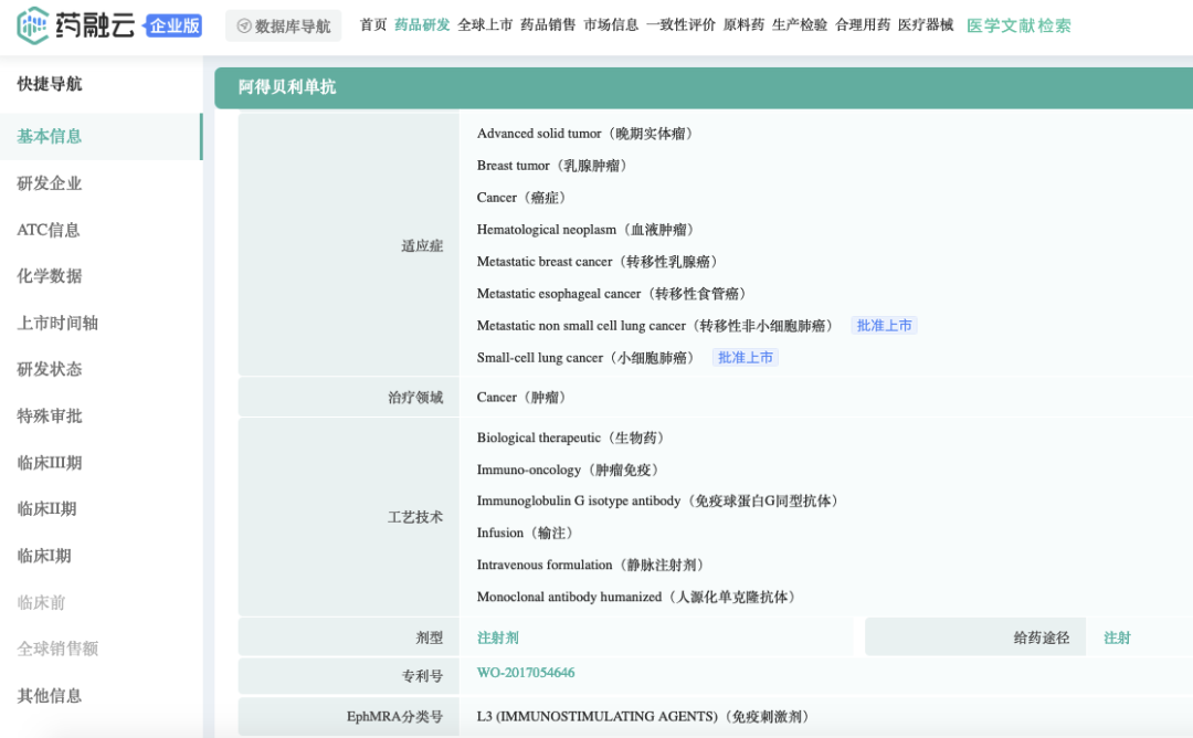 截图来源:药融云全球药物研发数据库
