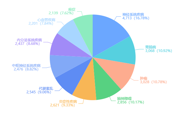 全球神经系统治疗药物研发热门靶点TOP10(微信搜索"药融云小程序"进行相关更多数据查询)