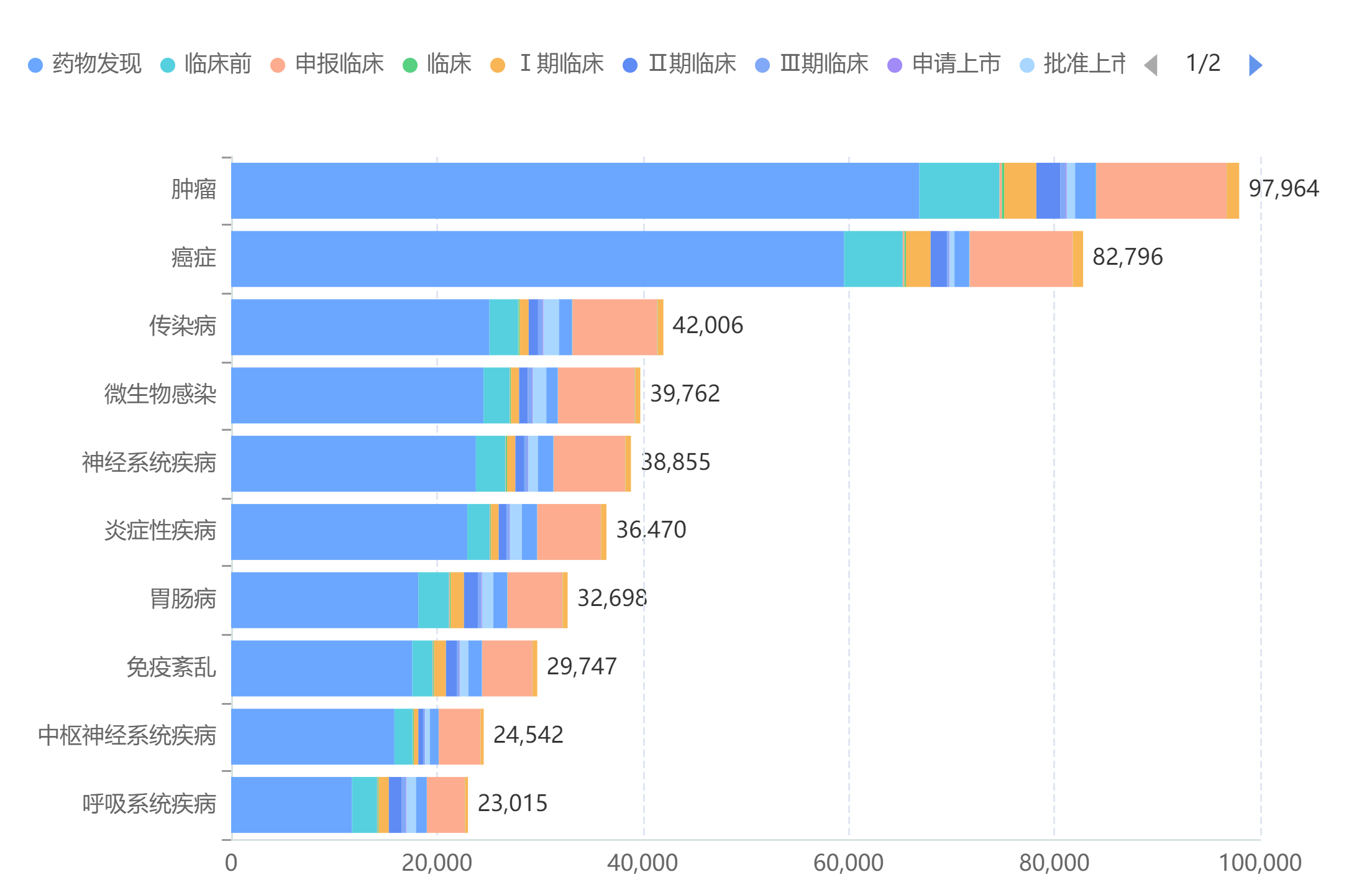 全球药物研发治疗领域TOP10(微信搜索"药融云小程序"进行相关更多数据查询)