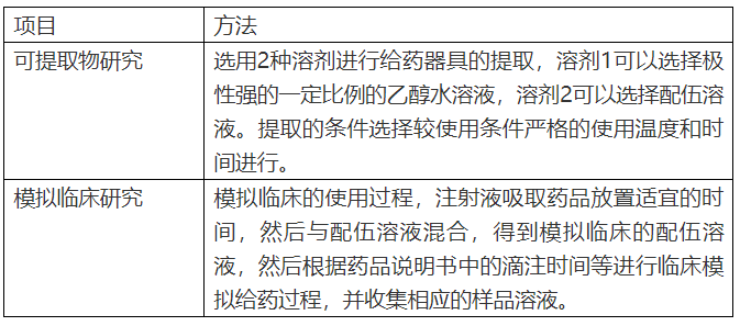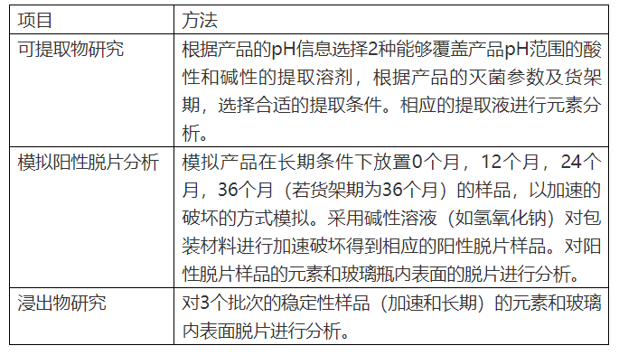 在包装材料相容性的研究中需要结合产品的包装材料的信息,产品特性及工艺综合设计研究方法。