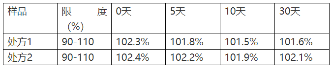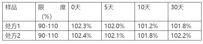 分别将处方1、处方2和处方3的样品放置于60℃和(或)40℃的影响因素稳定性试验箱中,取样时间点为5天,10天和30天。